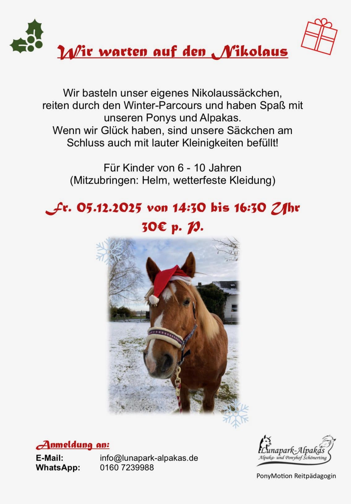 Alle unsere Aktivitäten finden in der vertrauten Umgebung unserer Tiere statt. Deshalb bieten wir keine Wanderungen oder Ausflüge mit unseren Alpakas an.